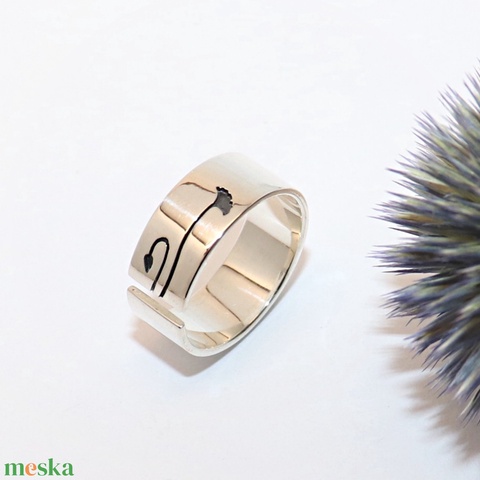 Antikolt, pipacsos, nyitott, női ezüst gyűrű, 61-es méret, állítható (EPK.36)