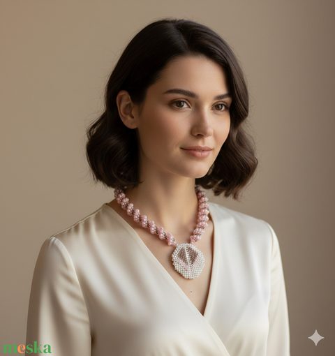 Rózsaszín - galambszürke fémmentes gyöngyfűzött nyaklánc