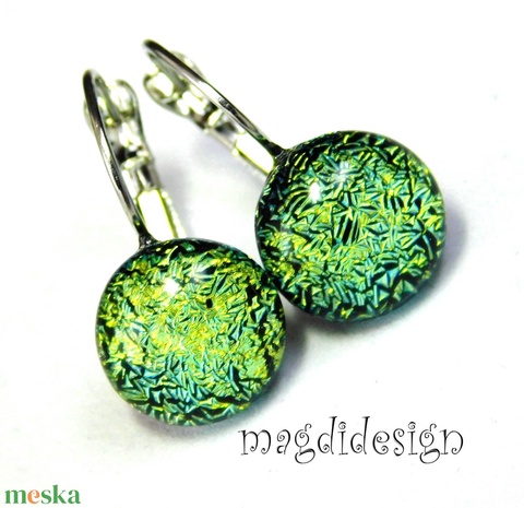 Színjátszó arany-zöld üvegékszer kapcsos fülbevaló