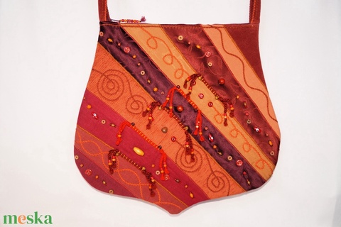 Narancssárga, rozsdabarna, piros, szivárványos, gyöngyös textil női válltáska