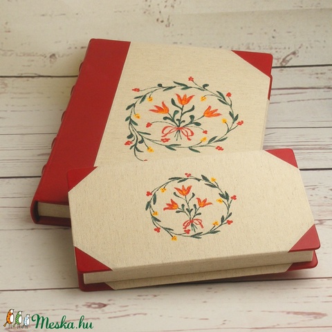 “Hosszú évekig kerestem a tökéletes receptkönyvet, mire végre megtaláltam :) Nagyon szép munka, régies, szolíd, mégis díszes. Bombabiztosan be volt csomagolva, ígért időre érkezett :) Alig várom, hogy átírhassam a repetjeimet ebbe a gyönyörű könyvbe. Szerintem mindenki, aki szeret főzni, nagyon örülne egy ilyennek. Nagyon köszönöm!:) Csilla”