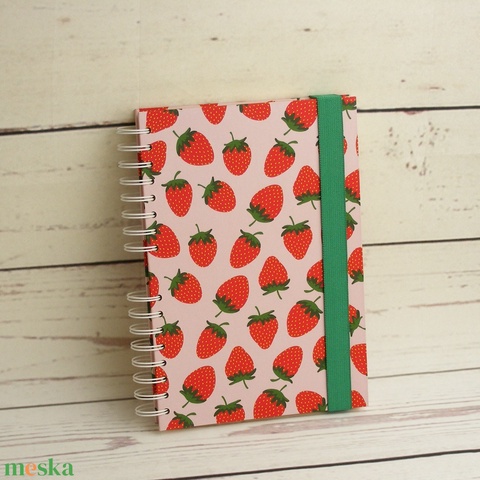 Epres füzet, spirálfüzet kemény borítóval, zöld gumis spirálozott jegyzetfüzet, gyümölcsmintás notesz. Névre szólóan is