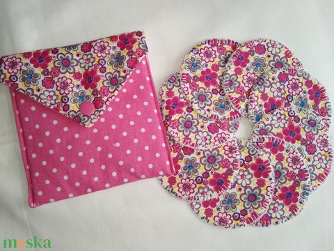 Pink virágos -pink pöttyös arctisztítókorongok 8db+neszesszer