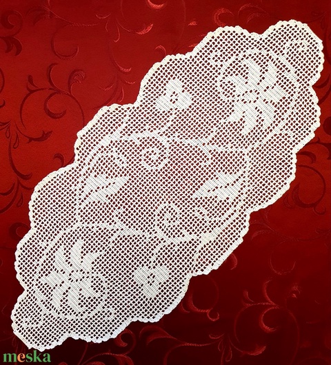 horgolt terítő, 75 cm, ovális csipke