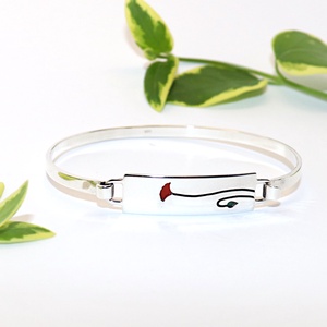Piros pipacsos téglalap, női ezüst karkötő (EPK.40)