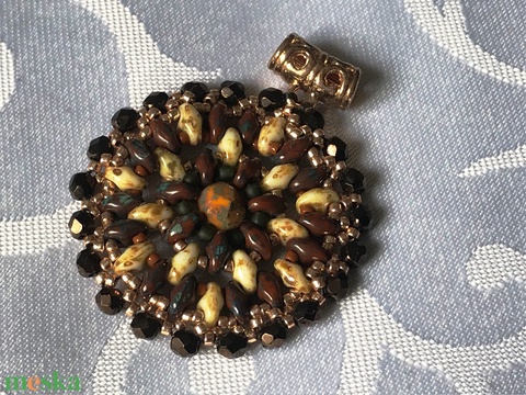 Csinos kerek, antik hatású medál japán és csiszolt gyöngyökkel
