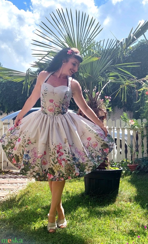 Rockabilly, pinup ruha mezei virágos bordürös pillangós