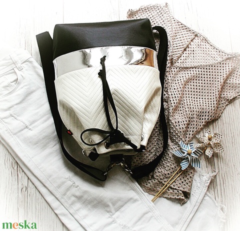 mágneskapocs, fém ringli, cippzár, műbőr, pamut vászon, karabiner, fémkellék, műbőr