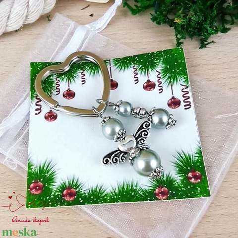 Ezüstszürke angyalkás szív kulcstartó táskadísz ajándék anyák napja ballagás évzáró pedagógus karácsony szülinap