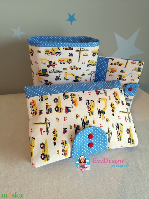 Babalátogatáshoz tökéletes választás ez a Babalátogató ajándék csomag. Csupa hasznos dolog, melynek biztosan örülni fognak az újdonsült Anyukák/Apukák. A termékek méretei: Dupla cipzáros pelustartó: Kb 26 cm magas és 44 cm széles (kinyitott állapotban) Kiskönyv borító: Kb 13 cm széles x 18 cm magas becsukott állapotban Asztali pelus tároló: 22 cm magas, 17 cm széles, 12 cm talpszélességű Ez a babalátogató ajándék csomag dupla cipzáros pelus tartóval készült. Dupla cipzáros pelenka tartó nagyobb egy picivel, a popsitörlős rekesz is cipzáros így ha kevesebb a popsitörlő a zacskóban akkor sem csúszkál el a helyéről. A popsitörlős rész alatt így még egy pakolós rekesz került kialakításra. Mosás: Moshatóak mosógépben is ( párnahuzatban v mosózsákban ajánlott a mosásuk, hogy ne akadjanak össze más termékkel és ezáltal ne sérüljenek) Élénkebb színösszeállítások esetén színfogó kendő is ajánlott mosáskor. Szárítógépben nem száríthatóak. Vasalásuk megengedett. NÉVHÍMZÉSSEL IS KÉRHETŐ, mely a következő linken vásárolható meg. Amennyiben mindkét termékre szeretnél névhímzést, úgy kérlek 2x vásárold meg a hímzést. Keresztév vagy becenév: https://www.meska.hu/p4640356-nevhimzes Teljes név: https://www.meska.hu/p4640359-nevhimzes Kérlek vedd figyelembe rendelés előtt, hogy a termékek mintázata máshová eshet a fotón látottakhoz képest, mert minden terméket egyszer fotózok. Kellemes nézelődést EveDesign
