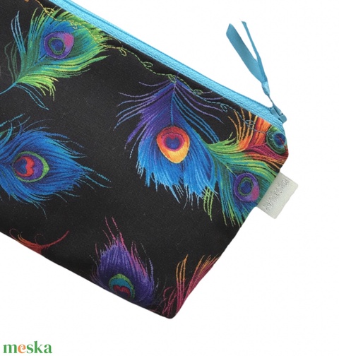 Fekete alapon színes pávatoll mintás szemüvegtok vagy tolltartó neszesszer - Artiroka design