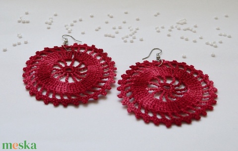 Horgolt, nagyobb méretű fülbevaló - piros - rózsaszín színátmenetes
