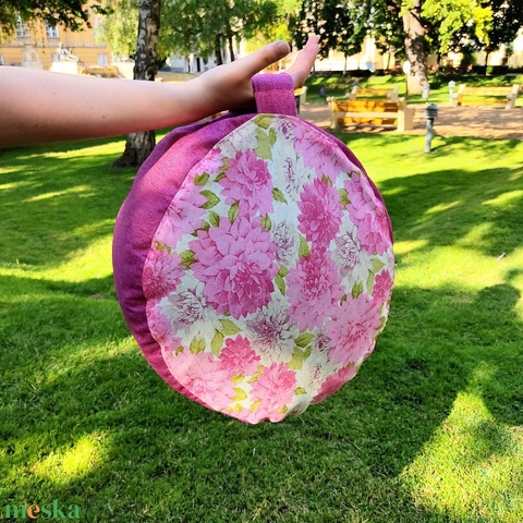 Meditációs, jóga ülőpárna tönköly pelyvával töltve, pink, virágos