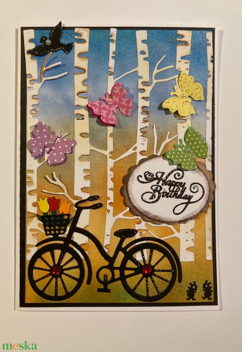 Születésnapi képeslap 3., üdvözlet, üdvözlőlap, bicikli, pillangó