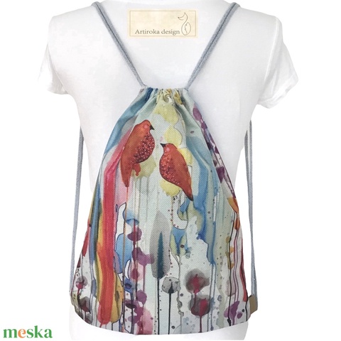 Madarak a nádasban - egyedi akvarell mintás hátizsák - EGYEDI DARAB - Artiroka design