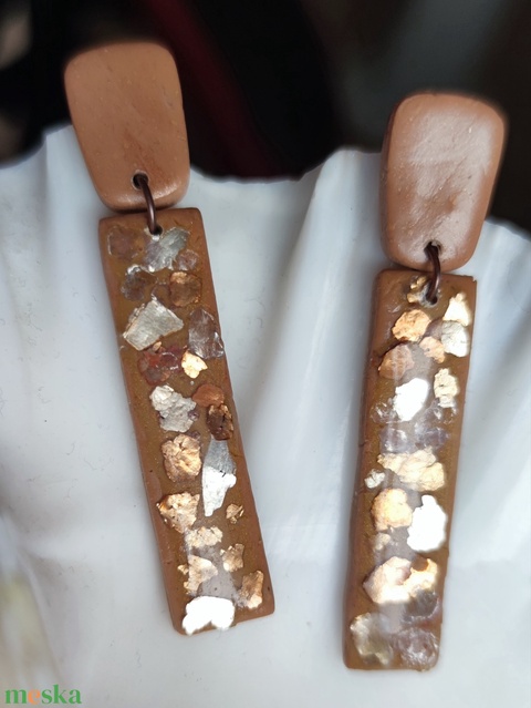 Cappuccino színű alapon gyöngyház lapocskákkal díszített fülbevaló