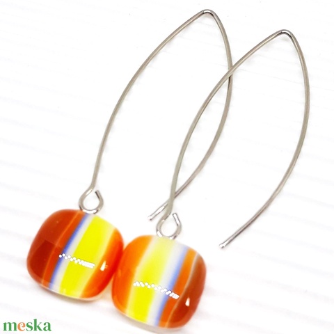 NEMESACÉL - Cirmos sárga színterápia kocka üveg fülbevaló design akasztón, üvegékszer