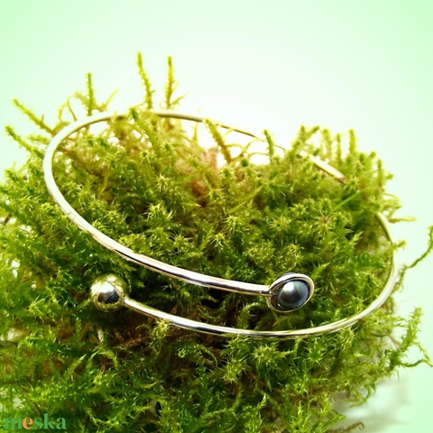 Szürke igazgyöngy és gömb, női ezüst karkötő, állítható (EIK.02)