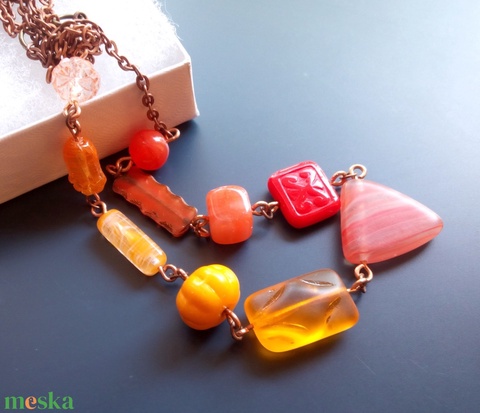 Bolondos gyöngyök nyaklánc narancssárga - piros