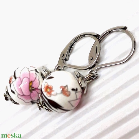 Japán cseresznyevirág porcelán gyöngy fülbevaló franciakapcsos NEMESACÉL akasztón, gyöngyékszer