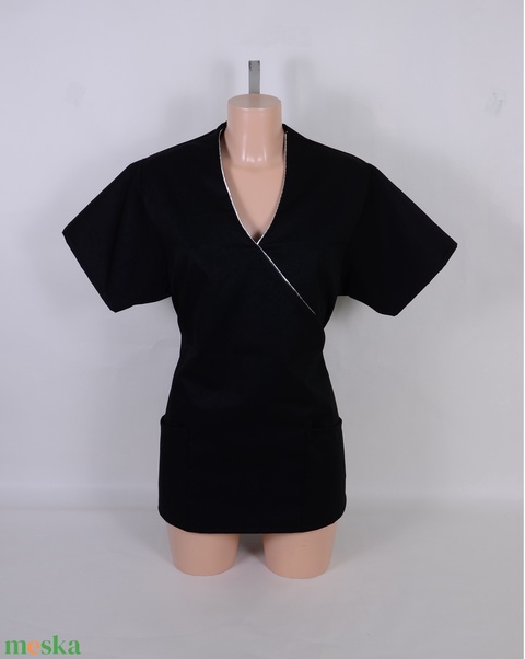 Fekete tunika ezüst paszpol díszítéssel egészségügyi/óvónői/szépségipari munkaruha