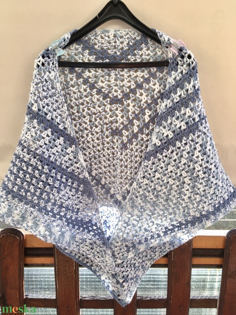 Kékes batik horgolt kendő