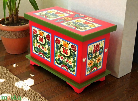Tulipános Láda, festett láda - közepes méretben