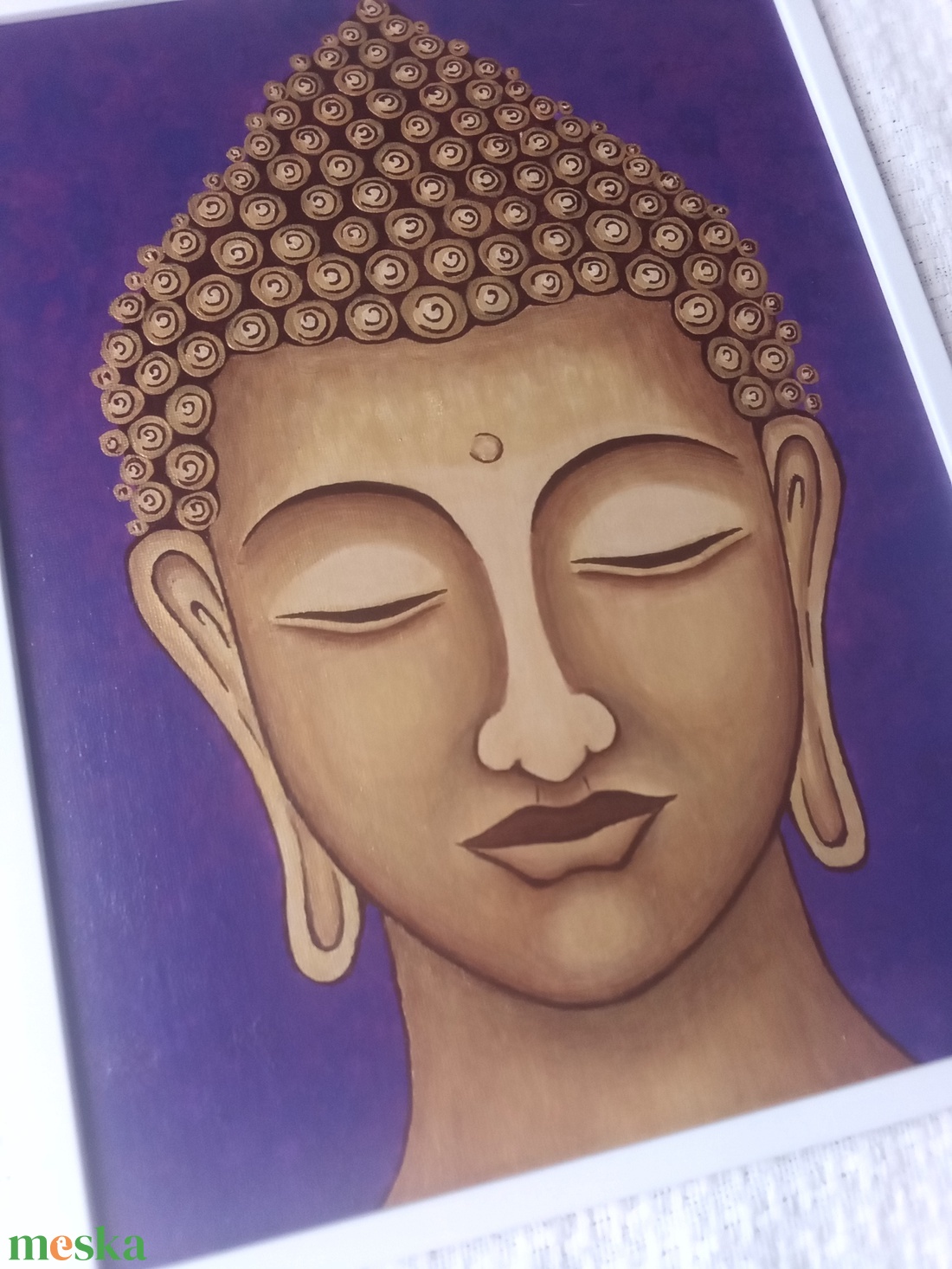 Arany Buddha - egyedi akril festmény, falikép 30x40, keretben