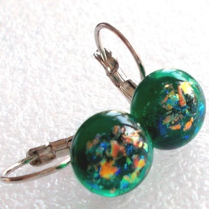 AKCIÓ! Smaragd fényjáték, kapcsos üveg fülbevaló , ajándék névnapra, születésnapra.