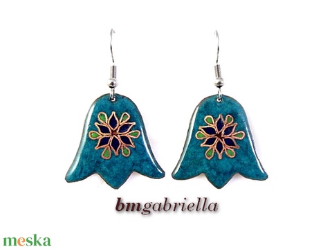 Virág-pár - egyedi tulipán tűzzománc fülbevaló nemesacél akasztón