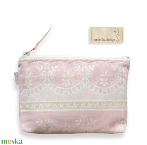 Pasztell púder rózsaszín, csipke mintás irattartó pénztárca vagy neszesszer - Artiroka design