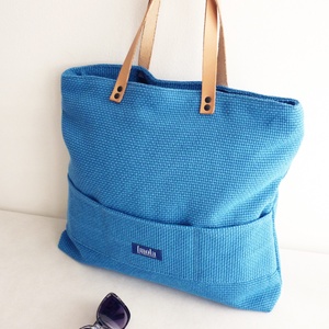Ket tónusú kék-barna vízlepergető hátizsák épület mintával laptop táska