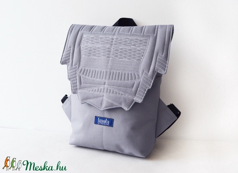 Világosszürke vízlepergető kicsi hátizsák épület mintával