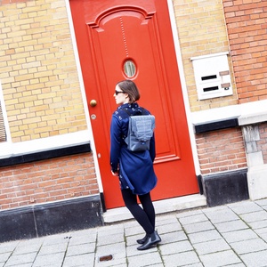 Fekete vízlepergető kicsi hátizsák épület mintával