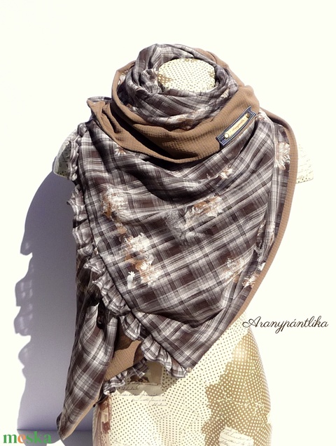 BARNÁK. (dupla falú, hosszú fodros stóla/sál, csokibarna-mogyorószín)-Aranypántlika