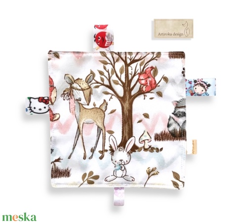 Erdő lakói mintás szundikendő, címkekendő, készségfejlesztő babajáték - Artiroka design