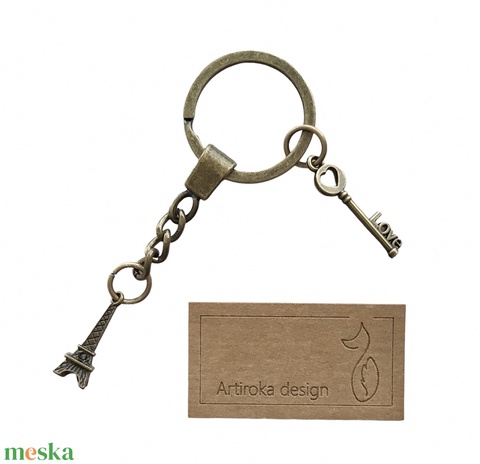 Eiffel torony kulcstartó, Vintage kulcs medállal - Párizs - Artiroka design