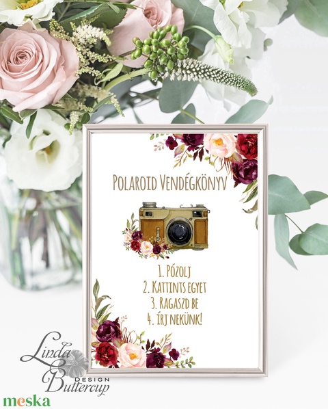 Polaroid fotó Esküvői Felirat A4, fénykép, fotó albumhoz, Esküvői kép, Esküvő Dekor, Esküvői felirat, virágos, virág