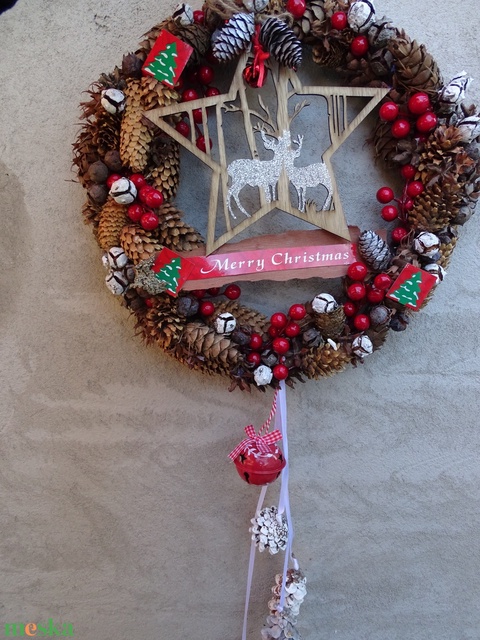 Skandináv, csilingelő Szarvas az erdőben -Téli,karácsonyi,csilingelő,adventi(nagy méret) kopogtató,ajtódísz,koszorú