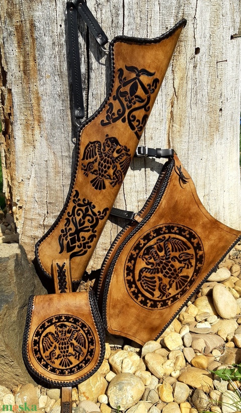 Íjász felszereléls/ íjász szett: bőr oldaltegez, tarsoly, készenléti íjtegez rakamazi mintával