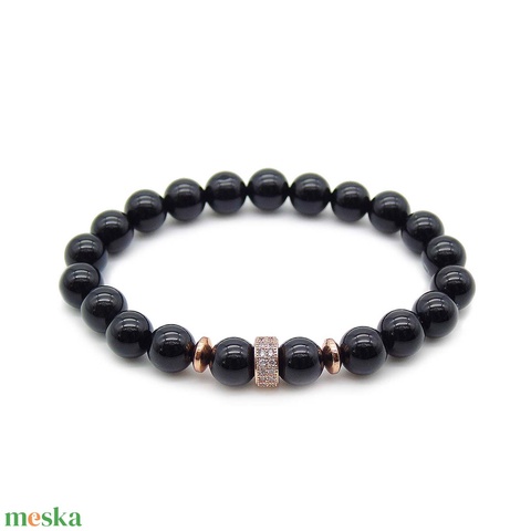 Rose gold díszes fekete női karkötő – ónix női ásvány karkötő