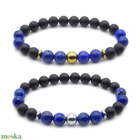 Páros karkötő - lazuli és matt ónix páros ásvány karkötő - pároknak közös karkötő