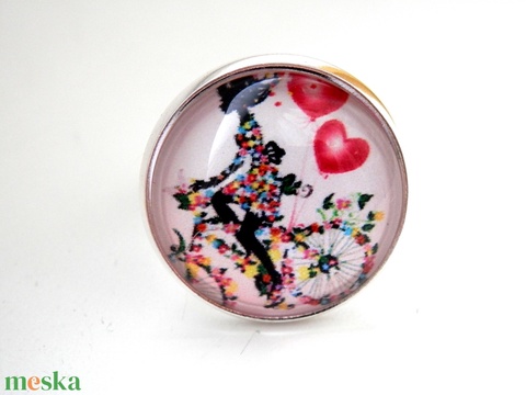 Lány virágos biciklin szív lufival - üveglencsés gyűrű