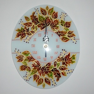 üveg óralap, óraszerkezet, oldószeres üvegfesték, arany üvegkontúr