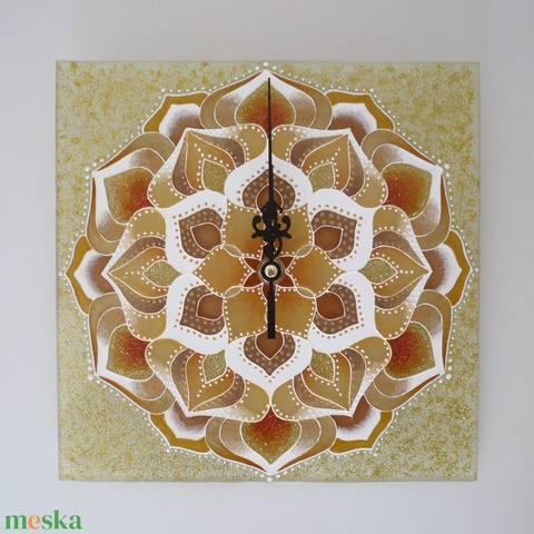 Arany Lótusz Mandala - egyedi festett üveg falióra