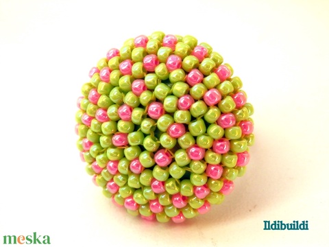 Pöttyös kerek gyűrű (almazöld és rózsaszín)