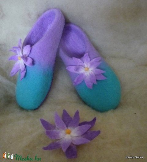 A nemezpapucsok "alá" igény szerint (a papuccsal megegyező színekben) nemezszőnyeget, ágyelőt is örömmel készítek.