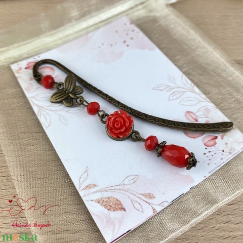 Piros rózsa könyvjelző egyedi ajándék ballagásra évzáróra pedagógusnak születésnapra névnapra nőnek lánynak