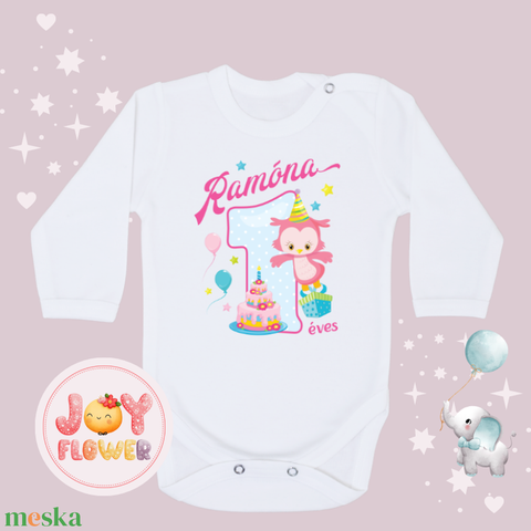 EGY ÉVES LETTEM - BAGOLY TORTÁVAL - EGYEDI FELIRATOS gyermek póló vagy kombidressz (body) aranyos grafikával