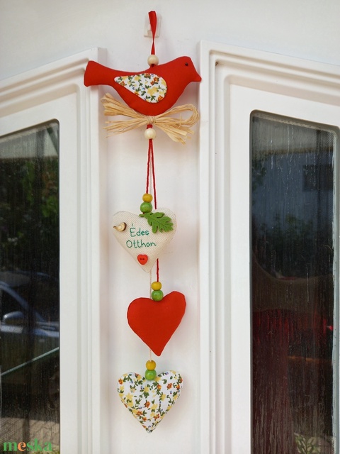 Piros fészekrakó madárka "Édes Otthon" felirattal